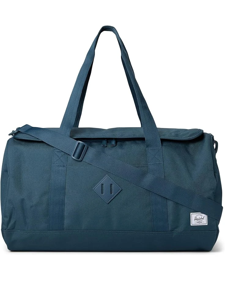 - Make outdooring easy with your expanding needs for storage in the company of Herschel Supply Co.â„¢ Herschel Heritage Duffle Bag. Designed in a boxy style, the bag features a zippered U-shaped opening with smooth webbing top-carrying handles and front sleeve pocket for additional ease.