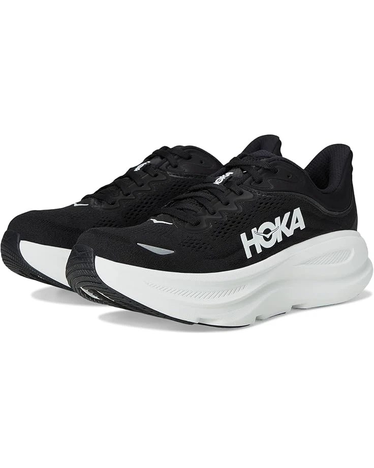 - Take on your sports and fitness journey with style and confidence wearing Hoka® Bondi 9 Sneakers. The low-top sneakers are crafted with a jacquard knit engineered mesh upper with zonal breathability, cotton lining, textile insole, and a new premium foam midsole that delivers a soft, resilient ride. This ultra-cushioned, round toe sneaker is finished with Durabrasion rubber outsole to combat high wear zones. Plus, the Hoka® branding on the side panel adds an authentic touch and the lace-up closure ensures a secure fit.