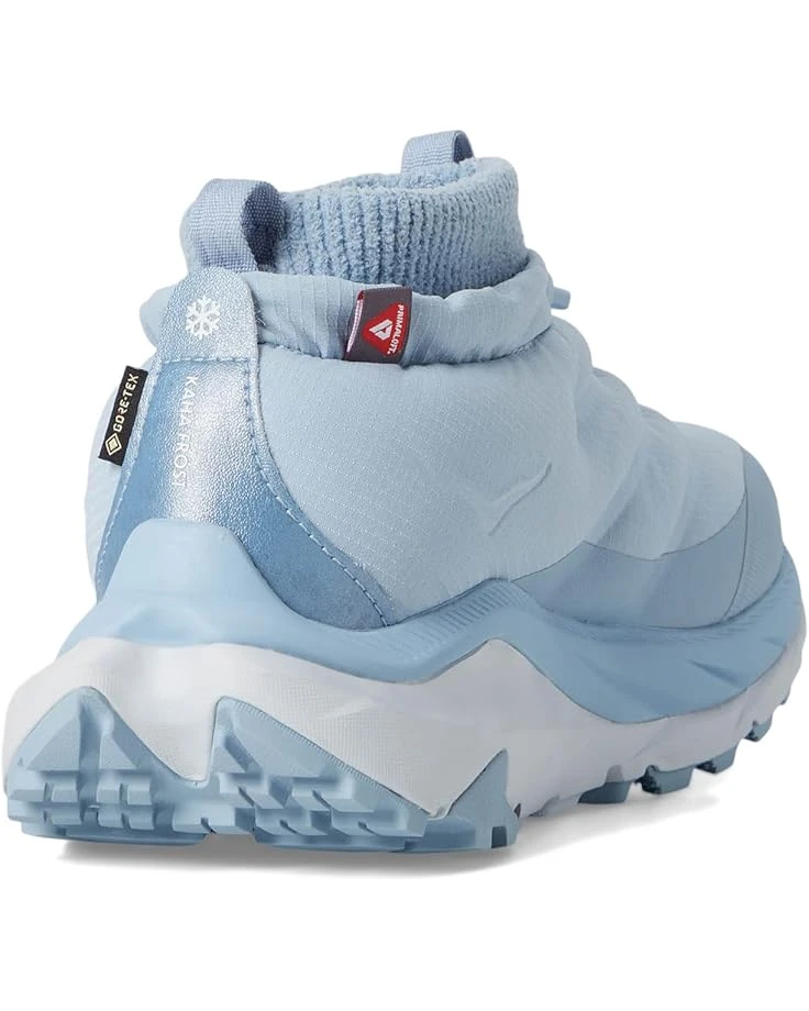 - The Hoka® Women’s Kaha 2 Frost Moc GTX® boots are plush cold weather-ready boots that come with stuffed quilted panels with 300g PrimaLoft® Black insulation for all-day comfort and warmth. These hiking boots are made of a 91% recycled ripstop polyester upper, polyurethane insole, and a stretch-fleece top collar with 35% recycled polyester. The quick-lace toggle closure with recycled bungee laces offers a secure fit while the waterproof GORE-TEX® membrane and water-repellent finish keep your feet dry and toasty. These lace-up boots are cold-weather rated to -32°C/-25°F.