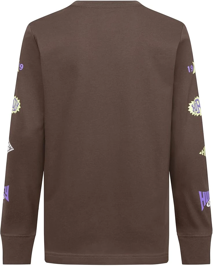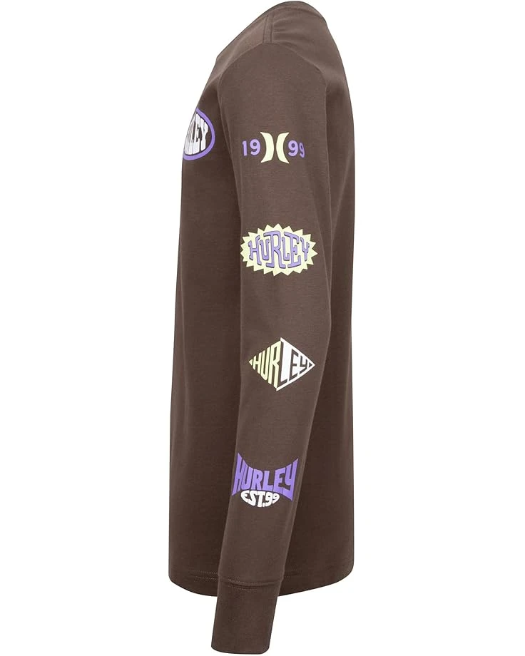 - Stylish comfort for every adventure! This Hurley® Kids Badge Long Sleeve Tee is crafted from soft jersey fabric, ensuring a cozy feel all day long. Featuring a classic crew neck and long sleeves with ribbed cuffs for a snug fit, it offers both comfort and style. The standout Hurley graphic on the chest and sleeves adds a trendy touch, perfect for active kids. Designed in a regular fit with an easy pull-on style, this tee is ideal for any casual outing or playtime.