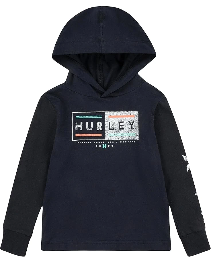 - Stay comfy and cozy wearing the Hurley® Kids Long Sleeve Graphic Hooded Top. This hoodie has an attached hood and long sleeves with elasticized cuffs. The graphics print on the front allows you to style this cool design with all kinds of outfits.